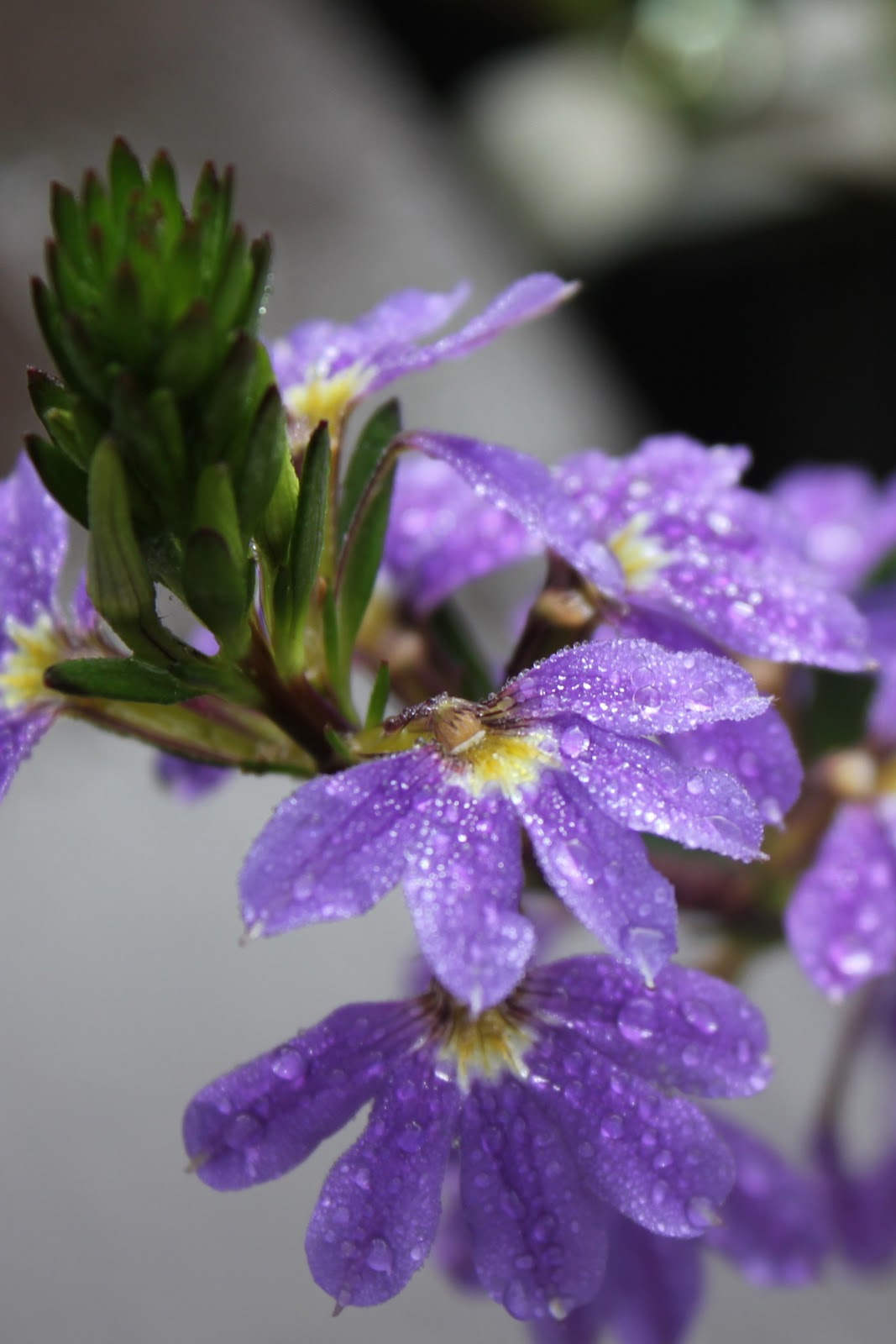The blooms on the purple scaevola also seem to gather and direct water. |